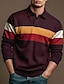 Homme Rayures horizontales Polo de rugby manche longue Polos Chemises à Col Occasionnel Extérieur Athleisure Impression 3D Printemps Automne Rouge Violet Marron
