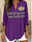 Chemise Femme Mardi Gras Lin Comme Respirant Léger Graphique Vintage Quotidien Chic Manches Longues Col V Hauts Normaux Imprimé Vacances Bleu Noir Blanc Jaune Violet Été Printemps