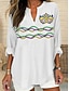 Blouse Femme V Col Graphique Géométrique Bohème Vintage Quotidien Manches 3/4 Hauts Normaux Quotidien Vacances Imprimé Noir Blanc Jaune Vert Kaki Été Printemps Automne