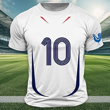 Homme Football Poulet français Drapeau de la France T-shirt Manche Courte T-shirt Impression 3D Col ras du cou Chemise Extérieur Athleisure Blanche Été Printemps Vêtement Tenue S M L XL XXL XXXL