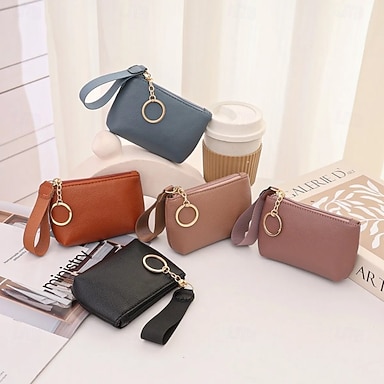 Porte-monnaie mini portefeuille en cuir PU – petite pochette à main avec dragonne, porte-monnaie multifonction tendance, portefeuille porte-clés portable idéal pour les voyages en extérieur