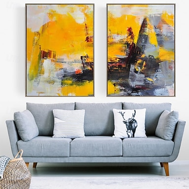 Peinture à l'huile abstraite peinte à la main en deux parties, art mural fait à la main, art abstrait moderne et minimaliste, art mural bleu acier clair, texture acrylique, grande toile encadrée,