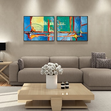 Peinture à l'huile faite à la main peinte à la main art mural abstrait ensemble de 2 pièces peinture sur toile décoration de la maison décor cadre tendu prêt à accrocher
