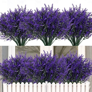 24 bouquets de fleurs artificielles d'extérieur, lavande résistante aux UV, fausses plantes vertes pour l'intérieur et l'extérieur, plantes suspendues pour jardin, porche, jardinière, maison, mariage, décoration de ferme
