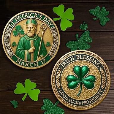 Pièce porte-bonheur commémorative de la Saint-Patrick, trèfle vert &Motif de fer à cheval, porte-bonheur irlandais, souvenir de la célébration du 17 mars