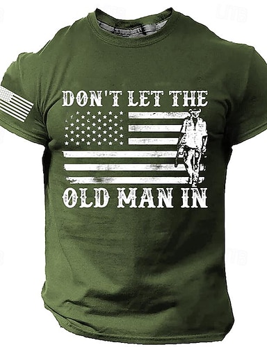 T-shirt graphique à manches courtes Henley pour hommes - Ne laissez pas le vieil homme entrer design patriotique du drapeau américain