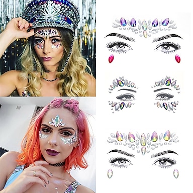AUTOCOLLANTS TATOUS CARNAVAL Avec des autocollants de diamant en cristal Autocollants de visage décoratifs en acrylique pour les musiques de danse Économiser l'eau Cadeau de Saint-Valentin