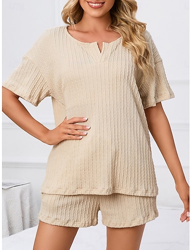 Femme Pyjamas Vêtements d'intérieur 2 Pièces Décontractées Couleur monochrome Patchwork T shirt Shorts Intérieur Manche Courte Col V Noir Rose Claire Beige Eté Coupe Sur-Mesure
