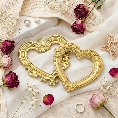 Cadre photo décoratif doré en forme de cœur, cadre d'exposition en résine à motif 3D à monter soi-même, mini-figurine décorative à poser, accessoire photo, décoration miniature pour maison de poupée,