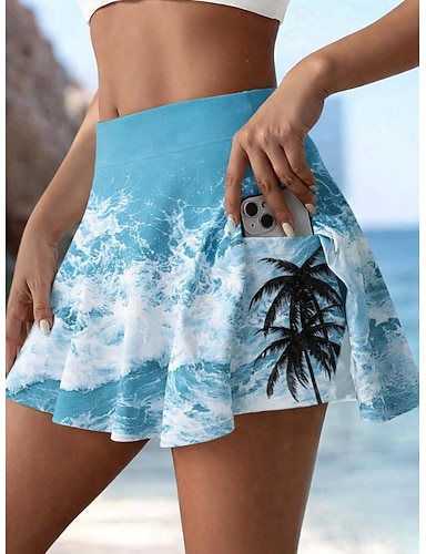 Femmes Jupe de vacances Jupe de tennis Élégant Mode Hawaïen Tenues de plage Mini Taille haute Jupes Fleuri Graphique Haute Élasticité Quotidien Plage Bleu et blanc Orange Bleu de minuit Été 95