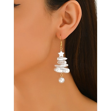 Boucles d'oreilles de Noël en acrylique pour femmes avec motif étoile et perle, en forme d'arbre festif, parfaites pour la mode des fêtes et les cadeaux
