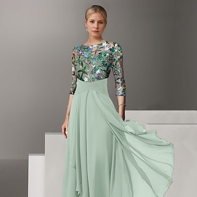 Ligne A Robe Longueur cheville Longueur thé Robe Maxi Robe de Soirée Robe de Cocktail Robe de Mère de Mariée Manche Courte Demi Manches Col ras du cou Col Illusion Élégant ancien Luxueux Formel robe