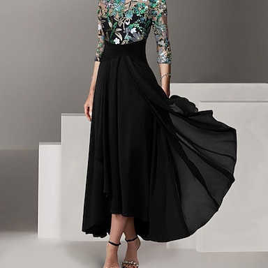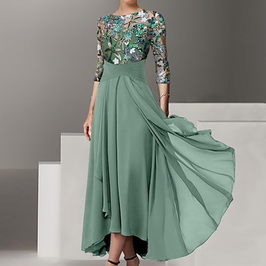 Ligne A Robe Robe haute-basse Longueur cheville Robe de Cocktail Robe de Mère de Mariée Manche 3/4 Col Bateau Élégant Simple Formel robe demoiselle d honneur Semi-Formel avec Volants Broderie