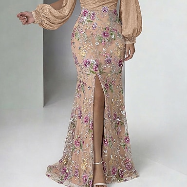 Sirène Trompette Longueur au sol Broderie perlée Robe de Cérémonie Robe de la mère de la mariée Robe de Soirée Robes de Quinceanera Robe de bal avec surjupe Tenue de soirée Élégant Sans manches Col