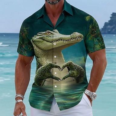 Homme Animal Crocodile Forme de Coeur Chemise hawaïenne Chemises tropicales Chemise Aloha Manche Courte Hawaïen Drôle Vacances Tenue de plage Été Printemps Col Rabattu Impression 3D Chemises