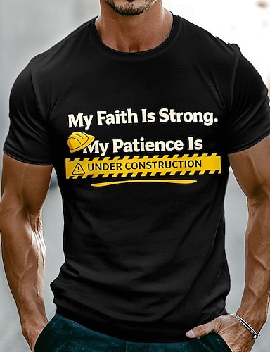 T-shirt graphique religieux chrétien Bible pour hommes 'Ma foi est forte ma patience est en construction' amusant humoristique casque de chantier à manches courtes coupe muscle décontracté vêtements