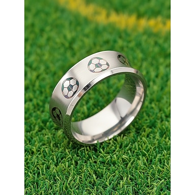 Bague homme en acier inoxydable à motif football, bracelet multicolore et multi-tailles pour supporters, idéal pour les matchs, le stade, ou au quotidien.