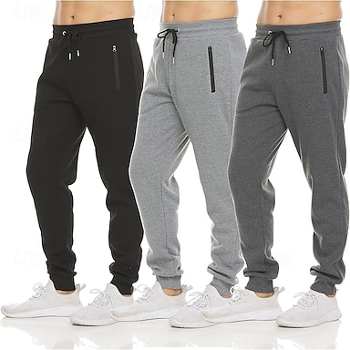 Ensemble 3 pièces pour homme : pantalon de jogging en polaire, coupe décontractée, taille élastique avec cordon de serrage, poche zippée, tissu uni respirant et évacuant l'humidité, idéal pour le