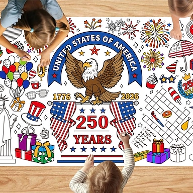Affiche à colorier pour le 250e anniversaire des États-Unis, 79 x 183 cm. Idéale pour la classe, les anniversaires, la fête de l'indépendance américaine, ou comme décoration murale ou nappe.