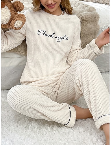 Femmes Ensemble Pyjama Occasionnel Confort Lettre Taille Élastique Pantalon Maison Quotidien manche longue Col ras du cou Blanche Printemps Automne Hiver Coupe régulière