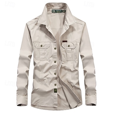 Homme Chemise Chemise d'été Chemise Décontractée Chemise Boutonnée Chemise Cargo Noir Blanche Rouge Marine foncé Kaki manche longue Uni Col de chemise Vacances Hawaïen Avec Poches Vêtement Tenue 100