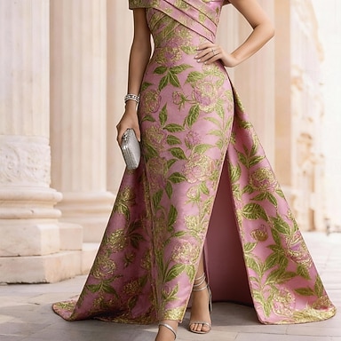 Ligne A Longueur au sol Robes de Cocktail Robe de Soirée Tenue de soirée Élégant ancien Manche Courte Épaules Dénudées Mariage Formel Nylon avec Poche