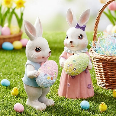 Figurine de lapin de Pâques en résine, adorable statuette décorative de lapin de dessin animé, décoration de Pâques artisanale en résine pour la maison, la table ou le jardin. &décoration de jardin