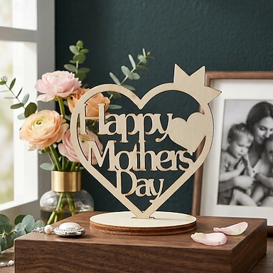 Décoration de table minimaliste en bois avec couronne et cœur, design ajouré, idéale pour la maison ou le bureau. Cadeau parfait pour la fête des mères et la fête des pères. Plaque décorative à poser