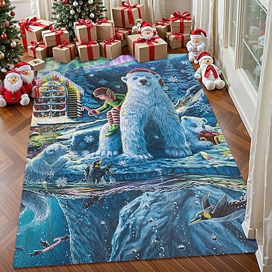 Tapis de Noël ours polaire pour salon et chambre tapis en faux cachemire avec scène de forêt d'hiver tapis doux antidérapant lavable en machine Réveillon de Noël à l'atelier par Dakota Daetwiler