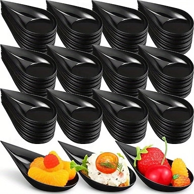 50 coupelles jetables noires en forme de larme pour assaisonnement, mini-apéritifs &Assiettes à sauce réutilisables, parfaites pour les pique-niques, le camping et pour servir des condiments comme la