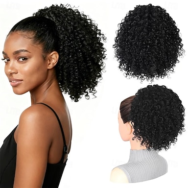 Queue de cheval à cordon pour femmes noires, postiche afro bouclé de 25 cm avec 4 pinces sécurisées, texture douce pour un confort optimal.