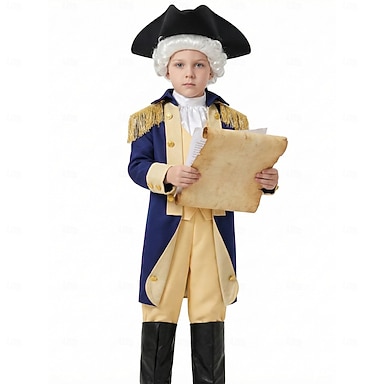 Set 250e anniversaire des États-Unis Rétro Vintage Médiéval Tenues Manches longues George Washington Déguisement Garçons Carnaval Jour de l'indépendance Mascarade 4 juillet Enfant Manteau Pantalon