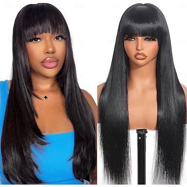 Perruques lisses en cheveux humains avec frange, perruques brésiliennes vierges pour femmes, perruques sans colle, perruques en cheveux humains faites à la machine, perruques sans lace front, couleur