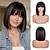 Perruque bob courte et lisse avec frange pour femmes noires, en fibre synthétique, aspect naturel, idéale au quotidien et au travail.