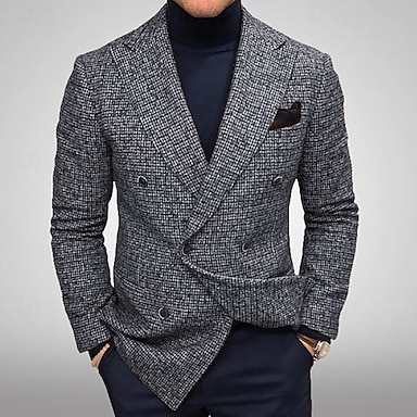 Homme blazer Entreprise Soirée Cocktail Fête de Mariage Mode Décontractées Printemps & Automne Polyester Pied-de-poule Bouton Poche Confortable Double Boutonnage veste Marron Gris