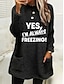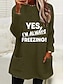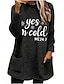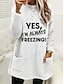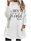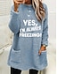 Pull-over doublé polaire pour femme, sweat-shirt, pyjama, oui, j'ai froid, lettre, streetwear, décontracté, manches longues, col ras du cou, régulier, hauts, rue, vacances, poche, imprimé, noir, rose, bleu, gris clair