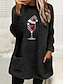 Femmes Sweatshirt Pull Verre de vin Occasionnel manche longue Col ras du cou Hauts Réguliers Rue Tenue Quotidienne Vêtements de vacances Avec Poches Imprimé Bleu Noir Blanche Rose Claire Vert Véronèse