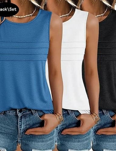 Paquets multiples 3 pièces Femmes Col rond Sans manches Noir + blanc + gris Débardeur Uni Occasionnel Polyester Été