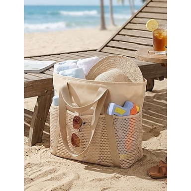 Lot de 2 grands sacs de plage en filet, sacs de plage grande capacité en polyester avec poignées robustes, sacs de voyage légers pour la plage, les vacances, la piscine et le camping.
