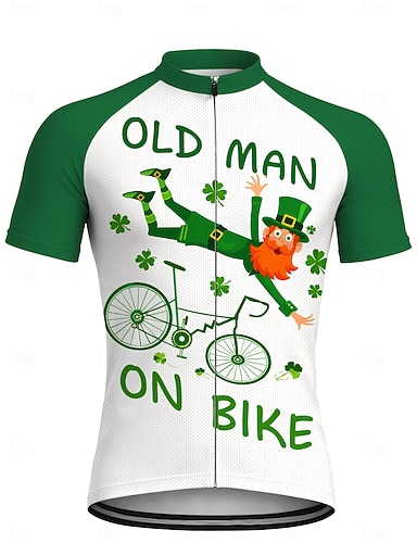 Jersey cycliste Saint Patrick pour hommes Jersey de nouveauté Trèfle à manches courtes Tee Tshirt haut avec 3 poches arrière Résistant aux UV Sèche rapidement Avec poches Zipper avant Sports
