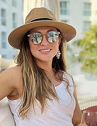 Femme Chapeau Chapeau de Paille Chapeau de soleil Portable Coupe Vent Respirable Plein Air du quotidien Fin de semaine Épissure Couleur monochrome