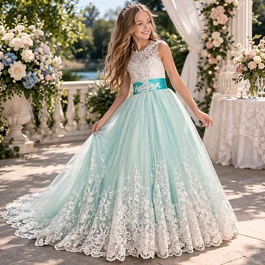 Robe de Demoiselle d'Honneur Fille Fille Robe de soirée Robe de première communion Robes de Soirée Robe de Soirée Soirée Mariage Élégant Mode Princesse Dentelle Maille Couleur Unie Sans manches Col