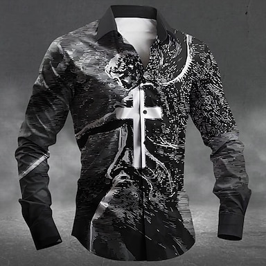 Chemise de croix Jésus pour hommes Chemise à boutons à manches longues Style gothique sombre Extérieure Vacances Été Printemps Chute Chemises à col 3D imprimées Noir