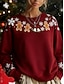 Femmes Pull Quotidien Occasionnel Graphique père Noël Côtelé Col ras du cou Tricoté Imprimé manche longue Hauts Réguliers Tricoter Extérieur Week-end Rouge Automne Hiver