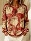 Femmes Sweatshirt Pull Motif de flocon de neige Occasionnel manche longue Col en V col de fourrure Hauts Réguliers cadeau de Noël Rue Tenue Quotidienne Patchwork Imprimé Vin Automne Hiver
