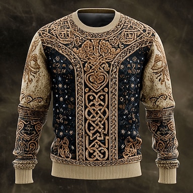Homme Viking Pull Tricots Col Rond Rétro Vintage Occasionnel Vacances Rue Quotidien Impression 3D Tricot Garder au chaud manche longue Printemps Automne Hiver Noir Bleu Marron