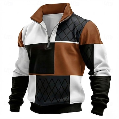 Pull homme à col montant zippé, style géométrique color block, patchwork, coupe décontractée, tailles S, M, L, XL, XXL, XXXL