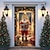Housse de porte de Noël, rideaux de vacances avec le Père Noël tenant des cadeaux de Noël avec un arbre de Noël lumineux et un chiot mignon pour la maison, l'entrée, le salon, la chambre à coucher,