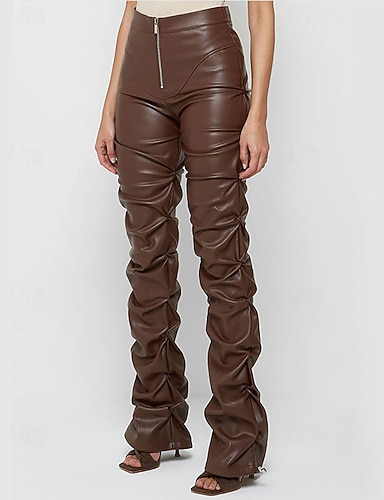 Femmes Pantalon en cuir Mode Streetwear Occasionnel Longueur complète Taille moyenne Uni Fermeture éclair Avec Poches Confortable Micro-Élastique Quotidien Extérieur Vacances riz blanc Vert