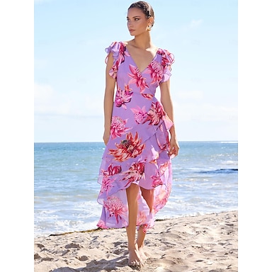 Femmes Robe d'Été Robe Fleurie Robe d'été Robe Longueur Genou Violet Sans manches Motif Floral Mode Fleurs A Volants Style Floral Impression Printemps & Été Devant Croisé Volants Robe à Motifs